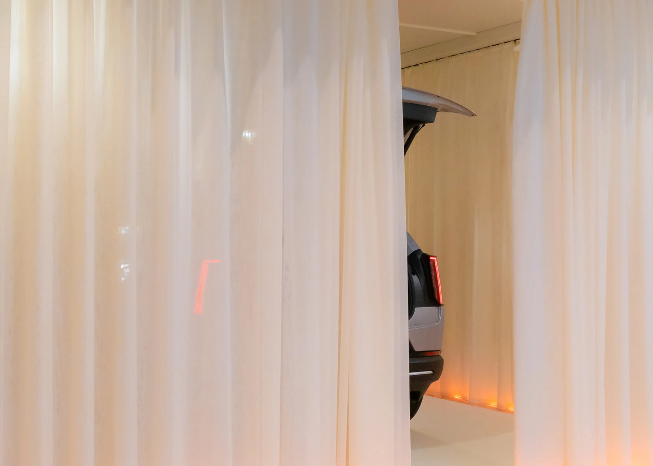 Curtains surrounding the space give each dealer the ability to stage a controlled reveal moment. Combined with custom audio and lighting programming, the setup enables a synchronized unveiling, turning each dealership into a launch environment rather than a static display.